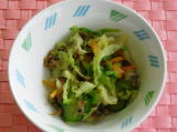 | 「鉄」がたっぷり含まれているあさりを、油でカリッと 揚げたサラダです。 あさりが苦手な人もおいしく食べられます。 |