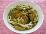 〈材料〉(4人分) ゆでうどん 鶏むね肉 酒 油揚げ にんじん たまねぎ たけのこ水煮 ごぼう 干ししいたけ ほうれん草 しめじ 長ねぎ 小麦粉 A サラダ油 カレー粉 しょうゆ B 砂糖 みりん カレールウ かたくり粉 だし汁 |