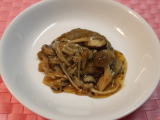 きのこのだしが濃厚な、うまみのあるソースです。低カロ リーのきのこがたっぷり入っているのでヘルシーです。 給食ではハンバーグにかけたものが登場しますが、他にも オムレツや豆腐ステーキなどにかけてもおいしくいただけま す。 |