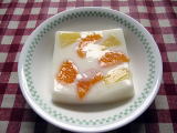 | 〈材料〉(4人分) 牛乳 スキムミルク 粉寒天 砂糖 塩 水 みかん(缶詰) パイン(缶詰) |