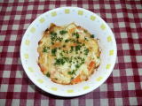 和の食材の「豆腐」を、洋風のグラタンに仕上げま した。淡白な味の豆腐に濃厚なホワイトソースが良く 合っています。 |